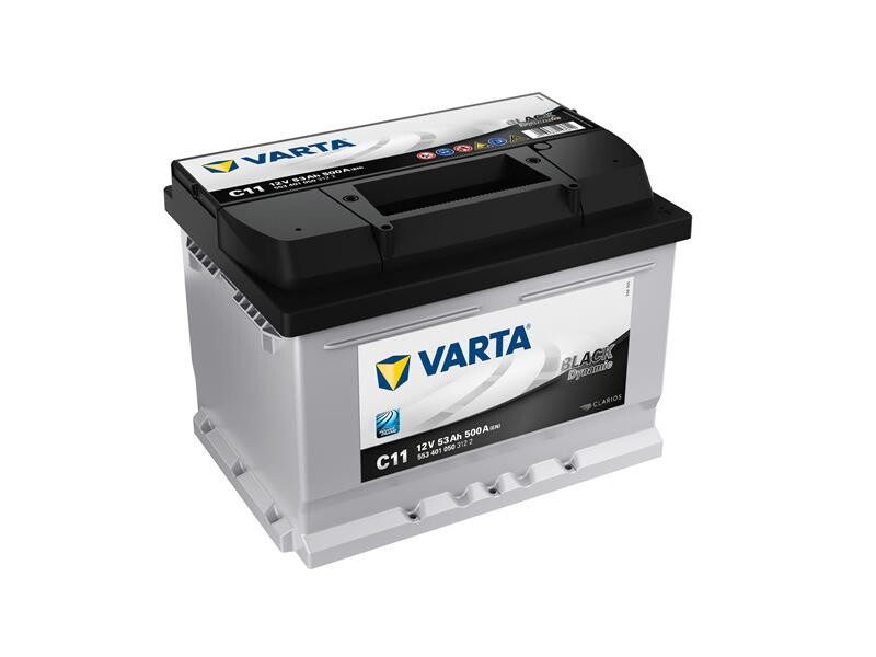 12V batteri fra Varta's Black Dynamic serie med en kapacitet på 53Ah. Black Dynamic serien er start batterier til biler fra før år 2000 med lavt strømforbrug. Dette batteri kan bla. anvendes til biler, varevogne og entreprenørmaskiner.