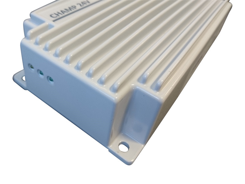 Meget kompakt og nøjagtig batterilader med en høj virkningsgrad. Kvalitetslader med fast programmering og lysdioder. Etuiet er særdeles stærkt, det er vandtæt og kan tåle montering udendørs. IP67-klassificeret og closed output. Laderen er beskyttet mod overophedning og kortslutning. 20A og 24V. Laderen måler 198x98x47 mm og vejer 1,7 kg.
