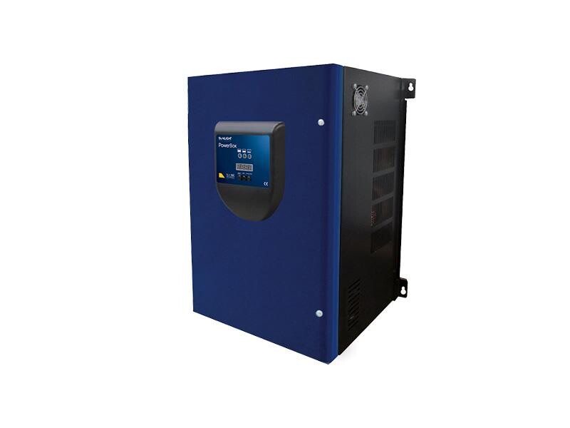 Højfrekvens lader fra Sunlight's PowerBox SLH12C serie. Sunlights serie af højfrekvens ladere er ladere af høj kvalitet. Denne serie af ladere tilbyder ladere i enten 24V, 36V, 48V eller 80V med ladestrømme mellem 40A og 180A beregnet til batteri kapaciteter mellem 340Ah og 1800Ah (10-12 timers ladetid). Laderne har 3 LED's som indikatorer på ladestatus. Med indbygget LCD display med ladestatus i real time som kan betjenes via 3 tryk-knapper Laderen kan opgraderes med syrecirkulation. Leveres med 8 ladekurver som kan vælges i menu.